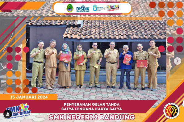 Bandung, 15 Januari 2024 – Kepala SMK Negeri 2 Bandung, Bapak Hasan Iskandar, M.Pd., menyerahkan piagam tanda kehormatan dan penganugerahan tanda kehormatan Satya Lencana Karya Satya dari Presiden Republik Indonesia kepada para guru SMK Negeri 2 Bandung. Penganugerahan ini diberikan sebagai bentuk apresiasi atas pengabdian dan dedikasi yang luar biasa dari para guru. Adapun guru-guru […]